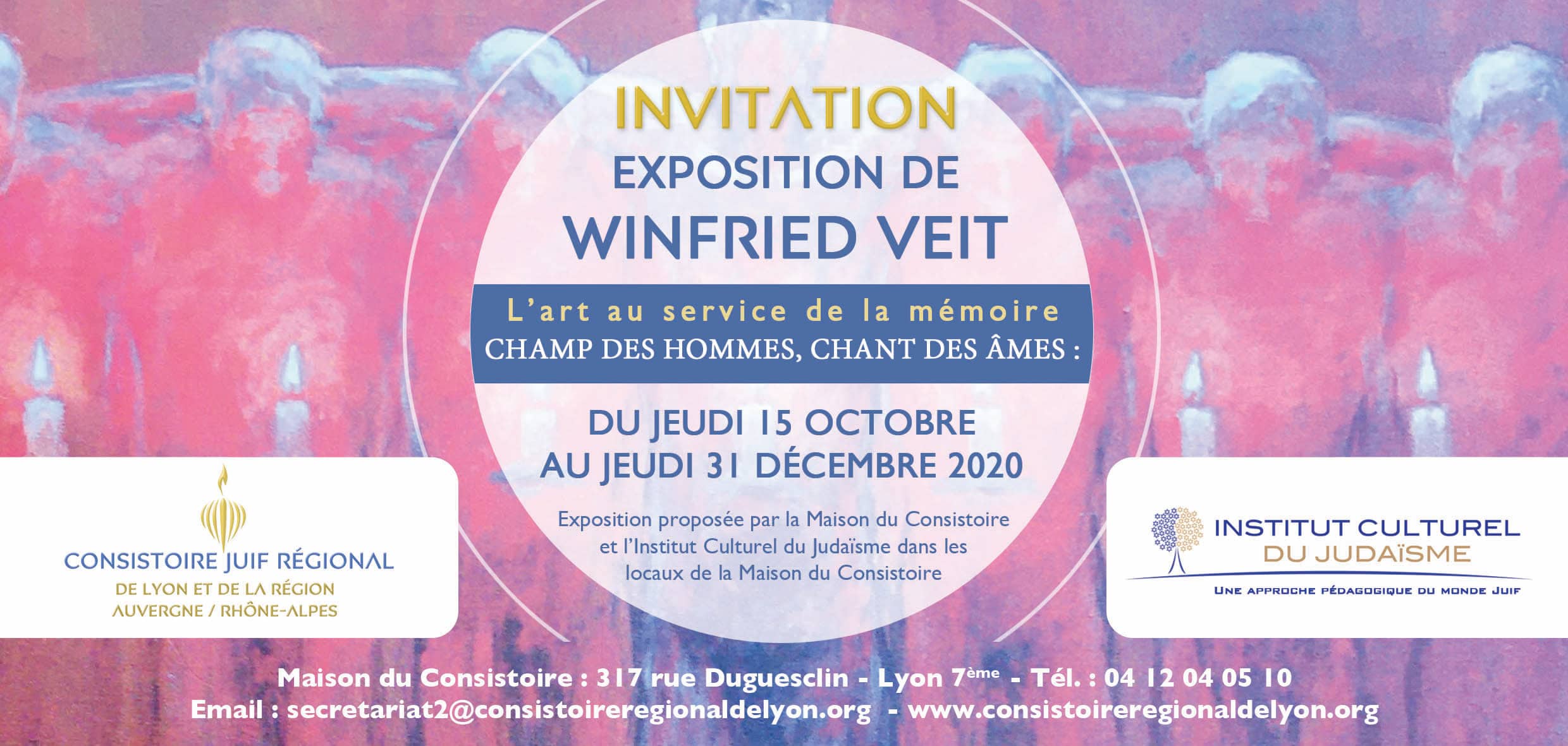 🖼️ Découvrez 'Champ des Hommes, chants des âmes', l'exposition de 20 tableaux de Winfried VEIT sur la Shoah. Un hommage poignant au devoir de mémoire à Lyon.
