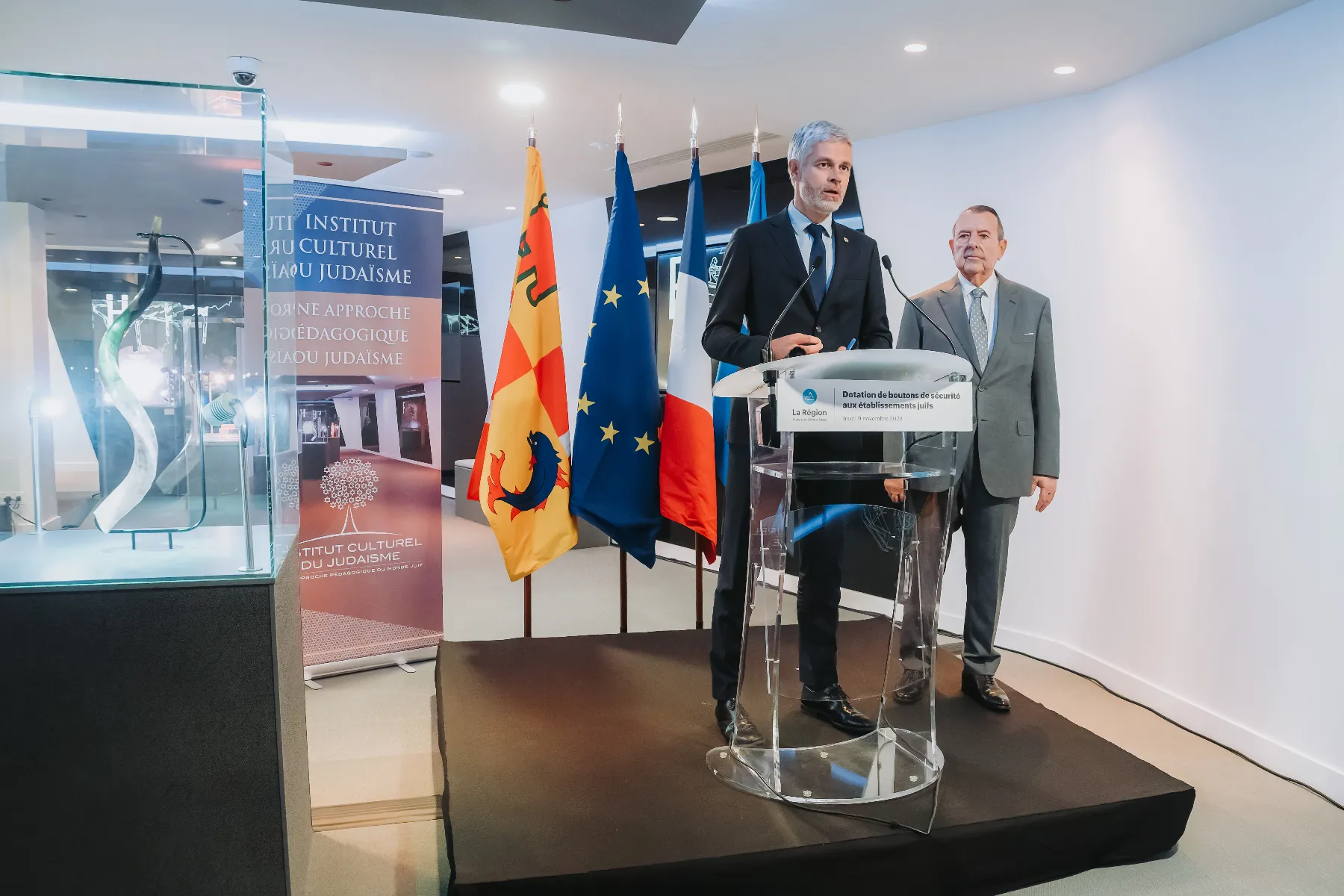 Le Président de la Région AURA, Laurent Wauquiez, s'exprime à l'ICJ sur la sécurité des écoles juives et la lutte contre l'antisémitisme dans la région.