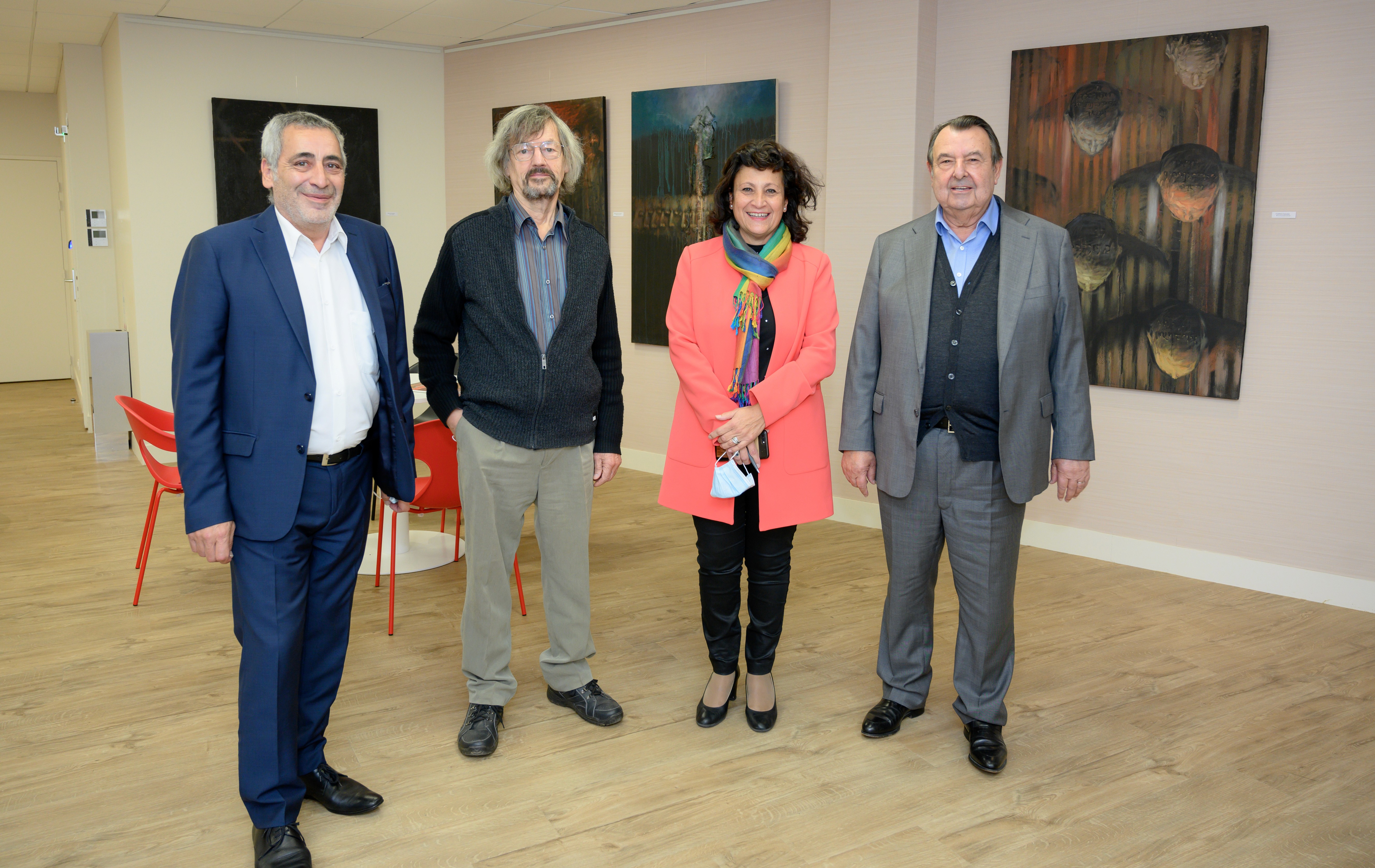 “Champ des hommes, chant des âmes” : ce sont près de 30 tableaux qui interpellent le visiteur en évoquant les victimes de la Shoah. “Je me suis laissé guider par mon inconscient” a notamment confié l’artiste lors du vernissage qui a rassemblé ce jeudi 15 octobre des visiteurs parmi lesquels Madame et Monsieur Altarac qui ont présenté Winfried Veit à Alain Sebban.